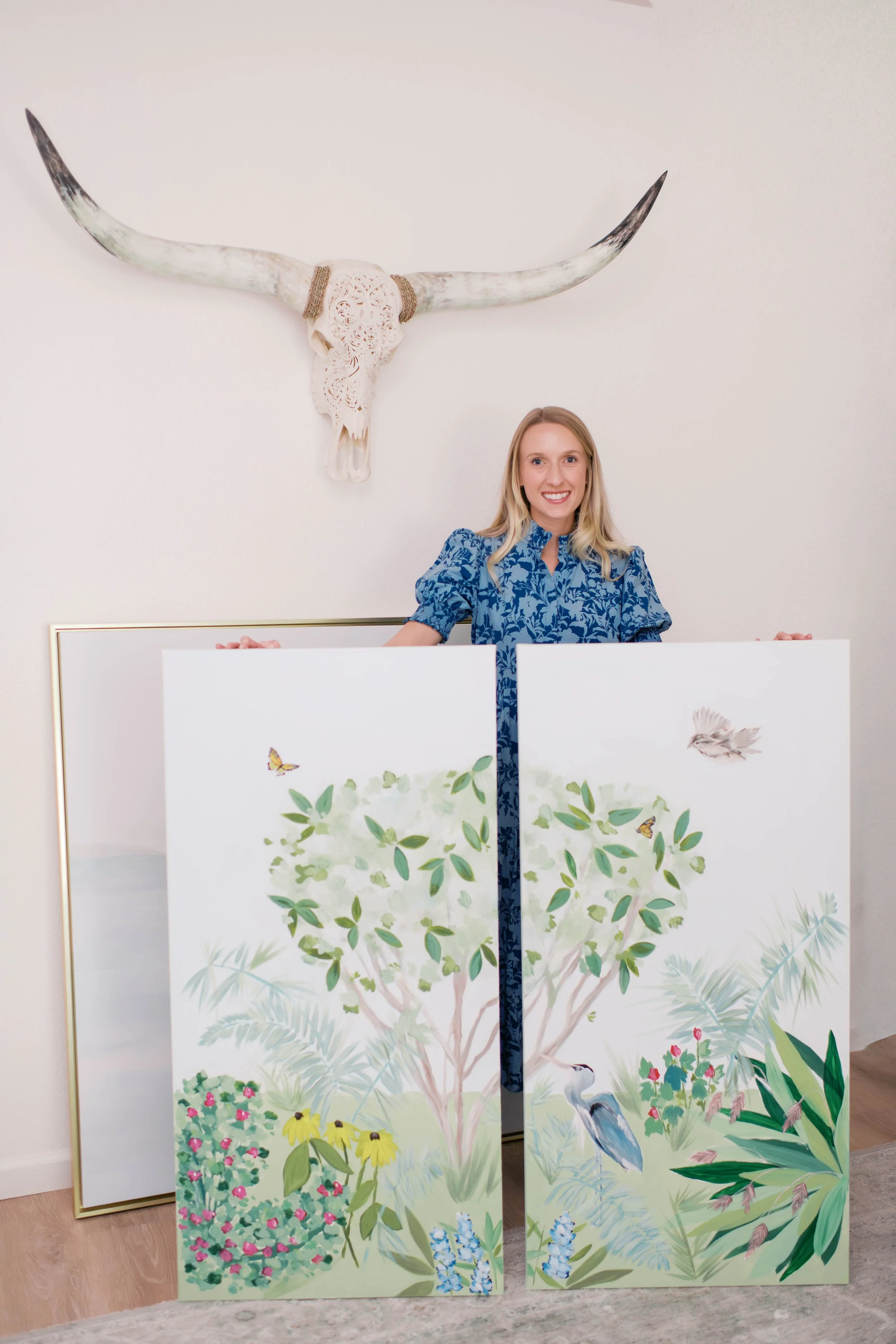 “Southern Menagerie” features all Texas-native birds and flora. A unique piece inspired by chinoiserie, and full of sentiment for Southern art collectors.